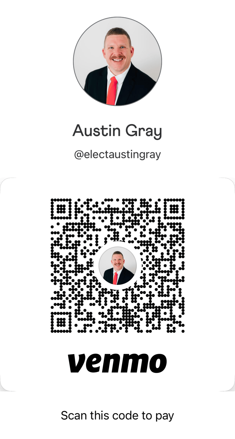 Please donate to the Committee to Elect Austin Gray. All funds are used for campaign expenses. Please include your name and address with all donations. You can donate through PayPal or Venmo. Thank you.